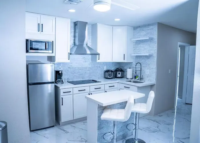 Cette villa Cozy Private Apartment Near The Las Vegas Strip offre également une cafétière/théière électrique, un réfrigérateur et un lave-vaisselle dans une cuisine équipée. Les clients peuvent dîner à Slices Pizzeria, situé à côté. L'aéroport international McCarran de Las Vegas est accessible en 20 minutes en voiture depuis le gîte.
